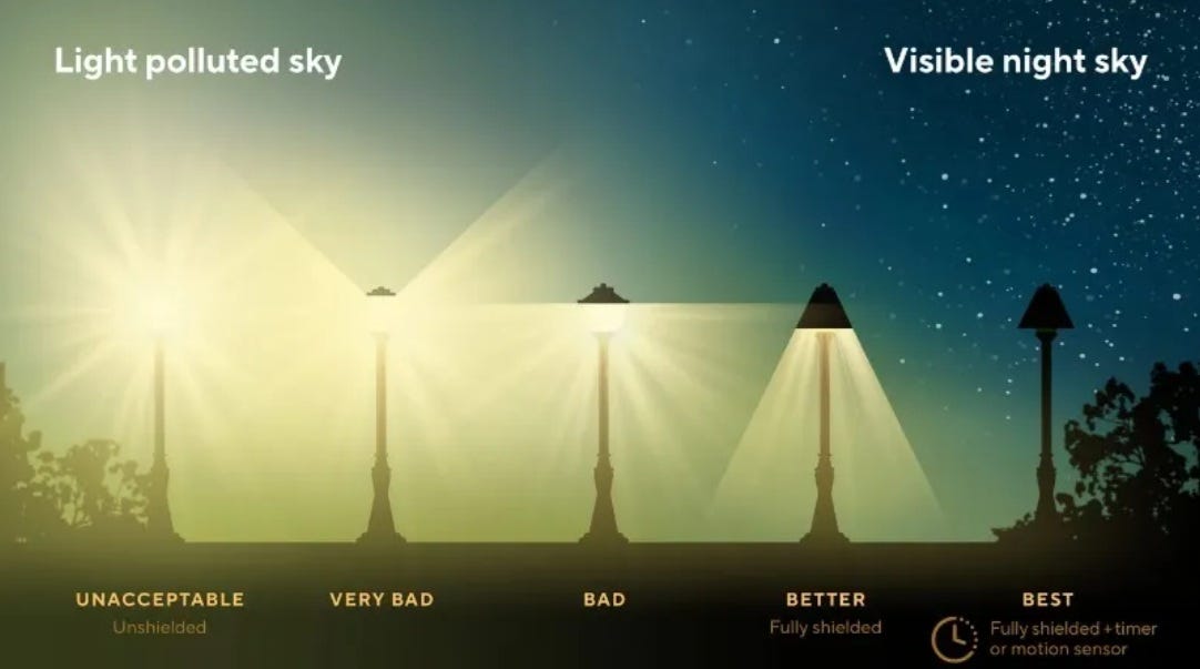 Controlling light pollution is an important element in retaining a pleasant ambiance for our community, not to mention the needs of our wildlife and star-gazing public.