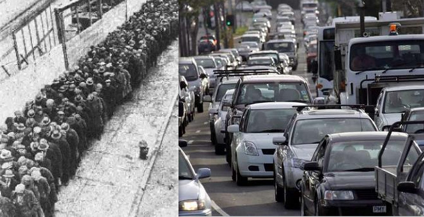 The pathological empathy of the Soviets led them to make more free bread for the “oppressed,” but ended up worsening life for those “oppressed” people they sought to help. Similarly, the pathological, bipartisan empathy of the political Left and Right in America leads us to widen free roads and expand free parking lots for the “suffering” motorist, but has ended up worsening life for the motorists Americans seek to help.
